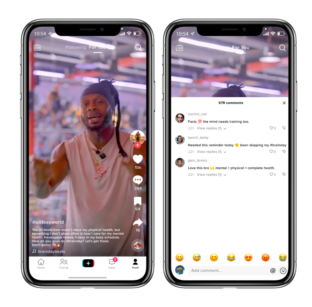 Get fitness influencers on tik tok / instagram to talk about the most underrated part of their routine: brain day. They’ll discuss how mental wellness, with the help of headspace, plays a key role in their physical fitness and their lives before inviting followers to share their own tips and experiences under the hashtag “brainday”.