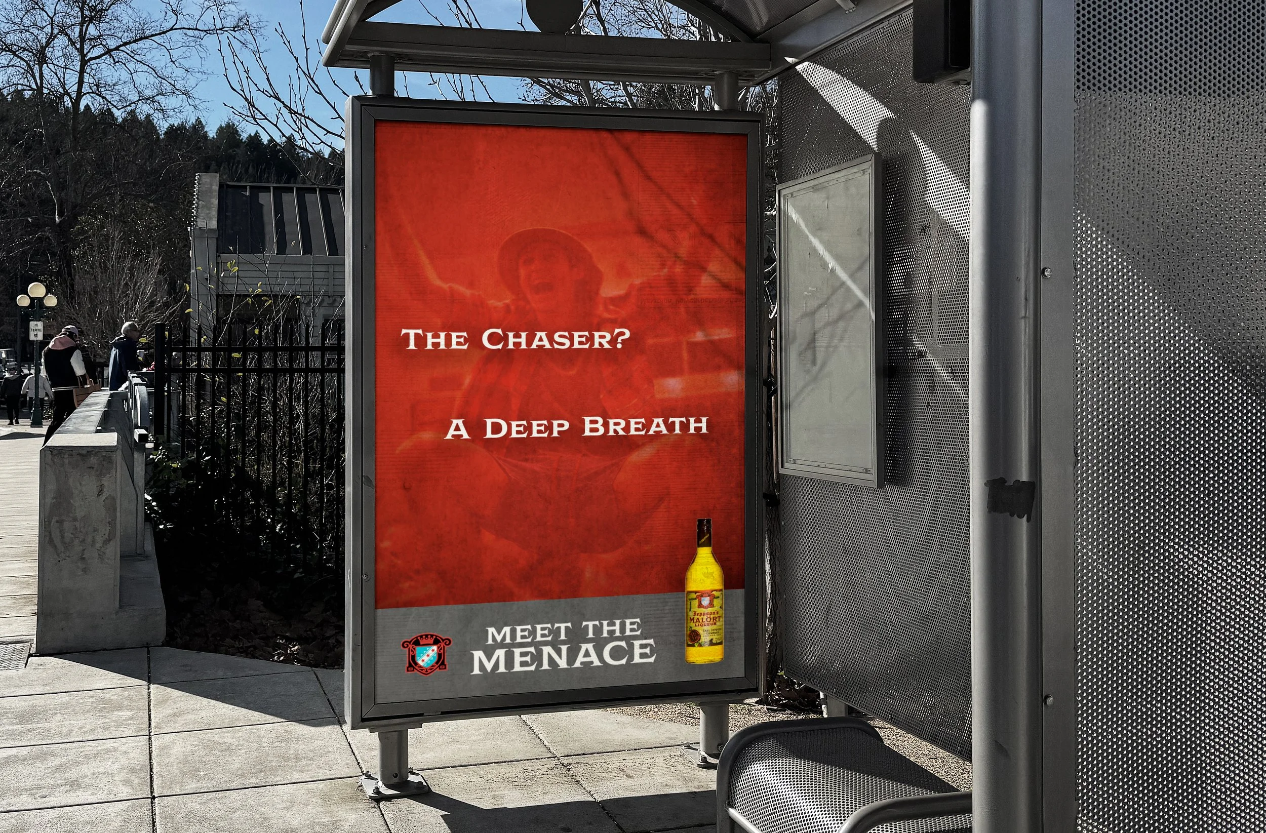 Throughout bars in the city of Chicago, the Malört Roulette Wheel will be placed to ensure menace energy everywhere. Each slice of the Malört Roulette Wheel is a slightly embarrassing dare to do in the bar. One slice takes things further: Menace Time.